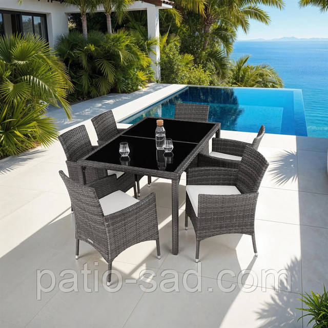 Елегантний набір садових меблів з ротангу 6+1 + чохол