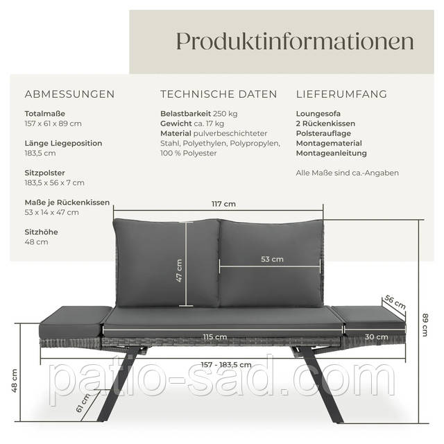 Ротанговий диван поєднує дизайн і комфорт для вашого відпочинку на відкритому повітрі. Цей універсальний диван легко адаптується до ваших потреб і завдяки функції «2 в 1» пропонує різноманітні можливості створення унікальних моментів відпочинку.